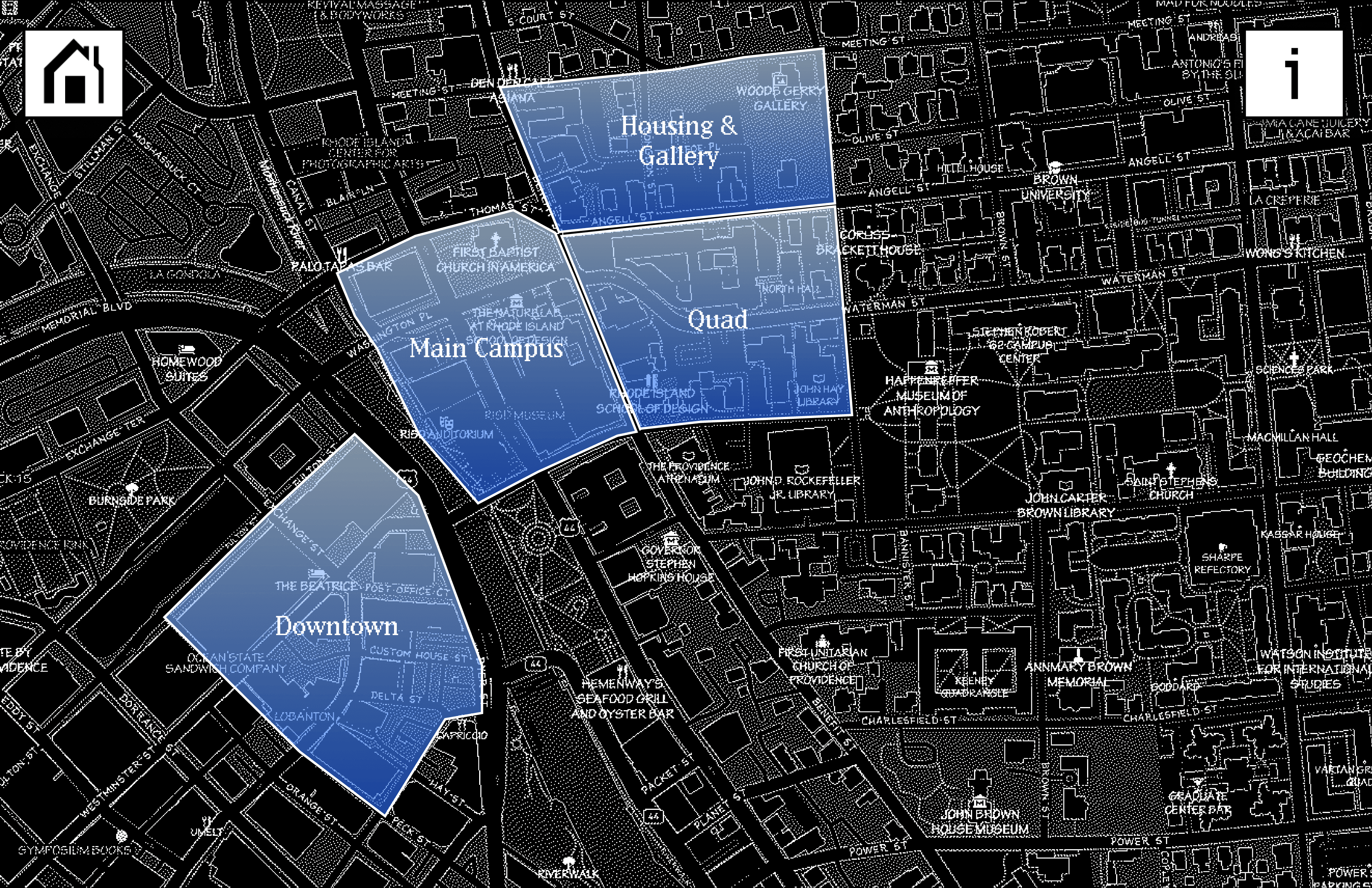 This interactive program seeks to help students and families find parking spots on RISD's dense and confusing Providence campus. Parking in Providence without some sort of permit is torture, so I made this tool alongside two other designers to help fellow RISD drivers navigate this automobile hell.